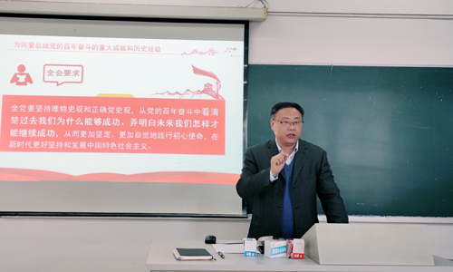 杨卫东从大会概况、为什么要总结党的百年奋斗重大成就和历史经验、中国共产党百年奋斗的历程、百年奋斗的历史意义和宝贵经验、习近平新时代中国特色社会主义思想为什么是马克思主义中国化新的飞跃等方面对全会公报和决议进行了解读。通过解读,使老师们深刻认识到:总结党的百年奋斗重大成就和历史经验是在建党百年历史条件下开启全面建设社会主义现代化国家新征程、在新时代坚持和发展中国特色社会主义的需要;是增强“四个意识”、坚定“四个自信”、做到“两个维护”,确保全党步调一致向前进的需要;是推进党的自我革命、提高全党斗争本领和应对风险挑战能力、永葆党的生机活力、团结带领全国各族人民为实现中华民族伟大复兴的中国梦而继续奋斗的需要。中国共产党和中国人民的百年奋斗史,从根本上改变了中国人民的前途命运,开辟了实现中华民族伟大复兴的正确道路,展示了马克思主义的强大生命力,深刻影响了世界历史进程,锻造了走在时代前列的中国共产党。