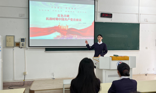 随后,全体同学回到学校,共同学习了专题讲座《红色丰碑——抗战时期中国共产党在南京》,辅导员陈瑶瑶深入浅出,从五个角度剖析中国共产党在抗战中的中流砥柱作用。讲座通过一系列发生在南京的红色故事,重现了中国共产党团结带领广大人民群众抗战的英勇事迹。