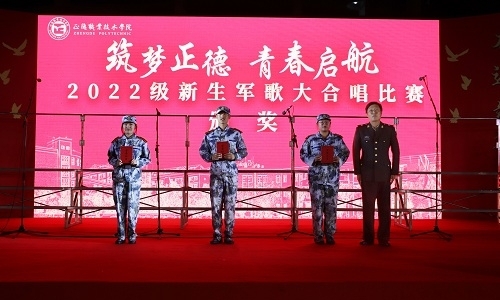 为丰富学生军训生活,2022级学生军歌大合唱比赛于9月28日晚上在学院田径场举办。学生处处长祝佳俊、教务处处长王俊、思政教研部主任杨卫东、团委书记黄晓帆、武警江苏总队机动支队郭凡,担任本次大赛评委。2022级学生和全体承训教员集中观摩比赛。