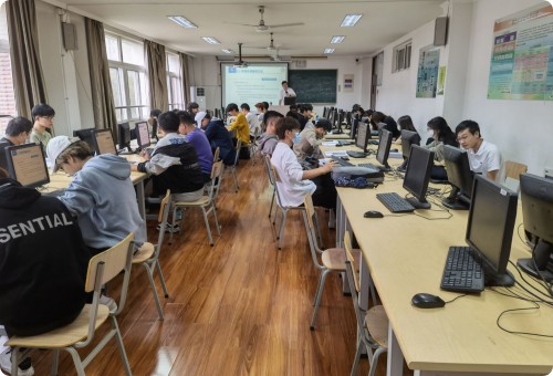 教室里,老师们早早地准备好教学设备和教案,等待着新生力量的到来;新生们元气满满,新奇而热情地倾听老师讲解课程第一课,并及时将重要的内容记录在笔记本上。