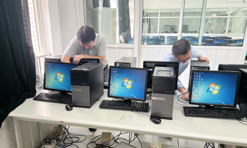 此次考试时间紧、任务重,为保证本次考试顺利进行,公共教学部计算机信息技术课程组全体教师全程参与技术保障,利用课余时间加班加点仔细排查硬件故障,及时更换有问题隐患的鼠标、键盘等,做好前期机房维护准备和模拟测试工作。模拟测试通过后,老师们按照要求封考场,等待考生的正式考试。