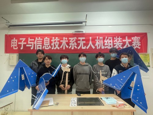 的无人机爱好者提供一个展示和交流的机会,10月25日,电子与信息技术系开展无人机飞行组装比赛,比赛由孙军辉老师指导,共15人参加,分为5组。