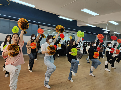 我系开展了以“彰显个性,绽放青春”为主题的啦啦操锻炼活动,由大二学姐带领大一新生练习啦啦操。啦啦操集激情活力于一体,同时也是一项完美契合我系专业技能提升的活动。此项活动为热爱啦啦操的学生搭建了一个展示自我的平台,提供了一个学习及表演的机会,也充分展现了我系学生的青春魅力。