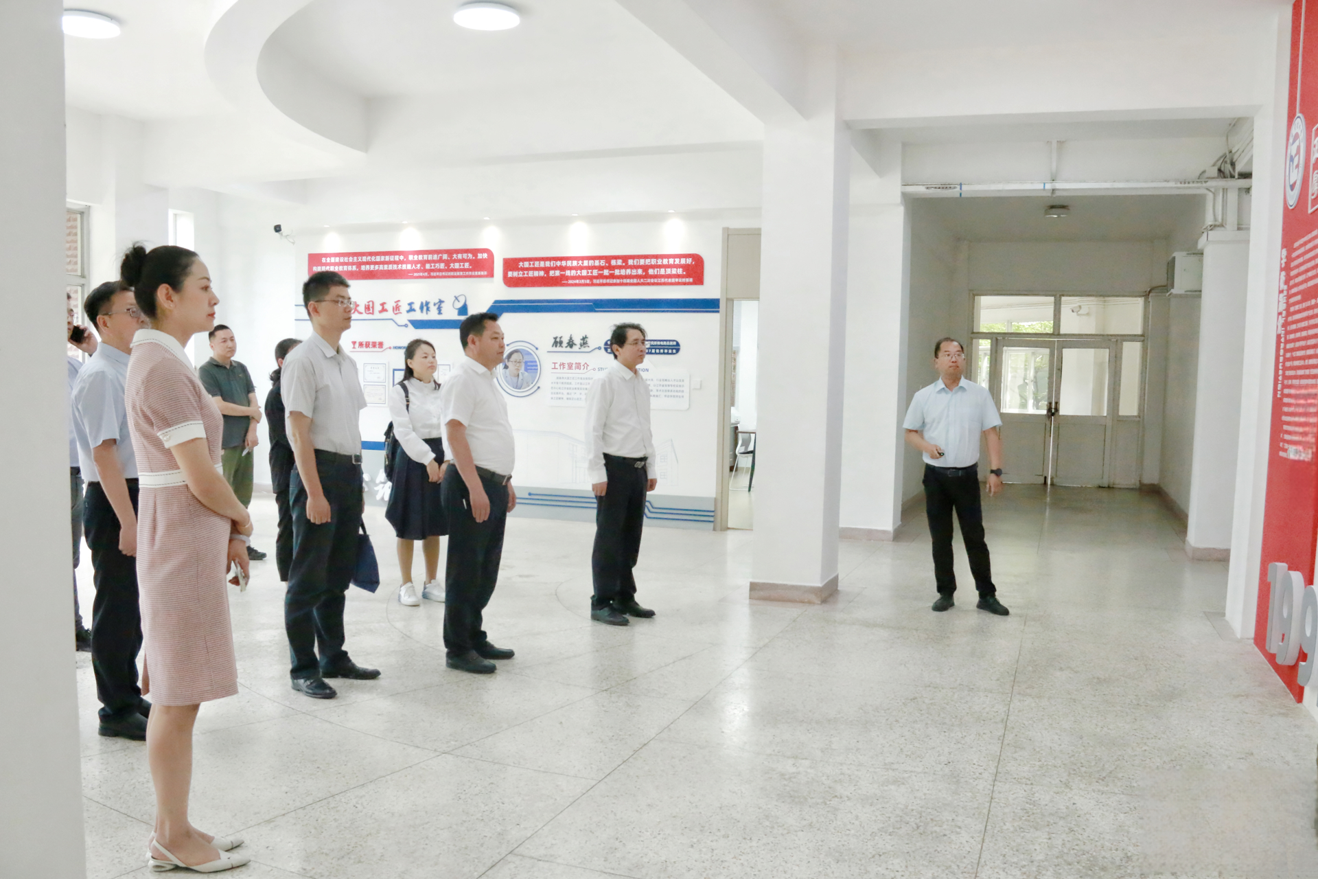 在孙永荣等领导陪同下,张志泳一行还参观了大国工匠工作室、正德立宝托育园和幼儿园实践基地。