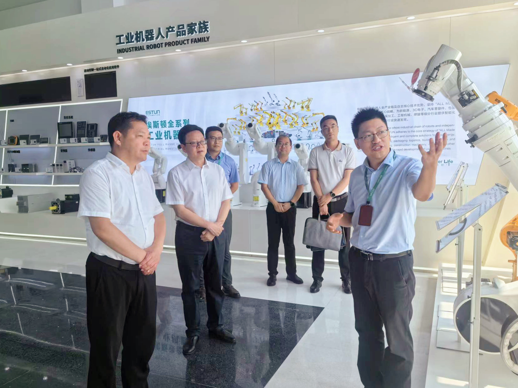 会前,孙永荣一行参观了埃斯顿展厅和生产车间。