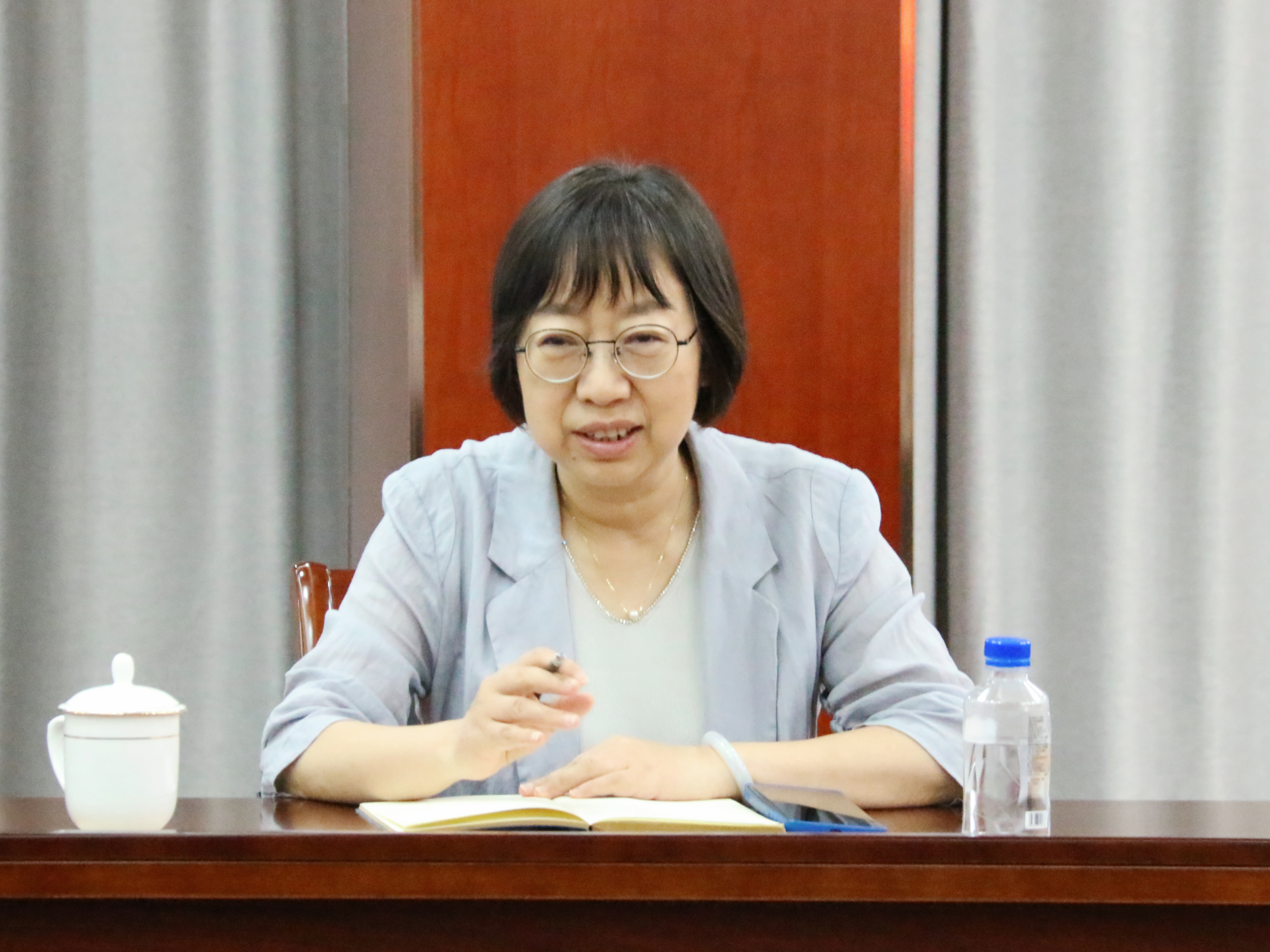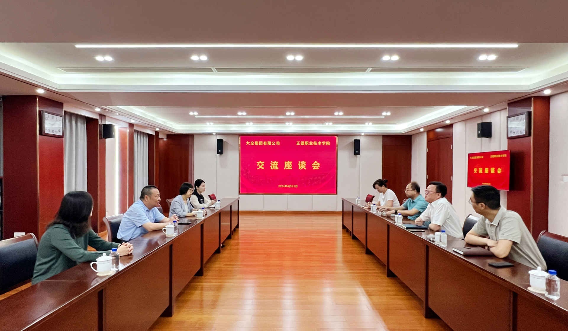 6月21日,南京大全园区副总经理周伟等一行来春满四合院 交流座谈,促进产教融合。江宁开发区社会事业局副局长杨晓莉参加座谈并进行指导。春满四合院 副院长赵凯雷,院长助理、党政办主任王伟,院长助理、招生就业处处长王墀以及相关部门负责人参加活动。