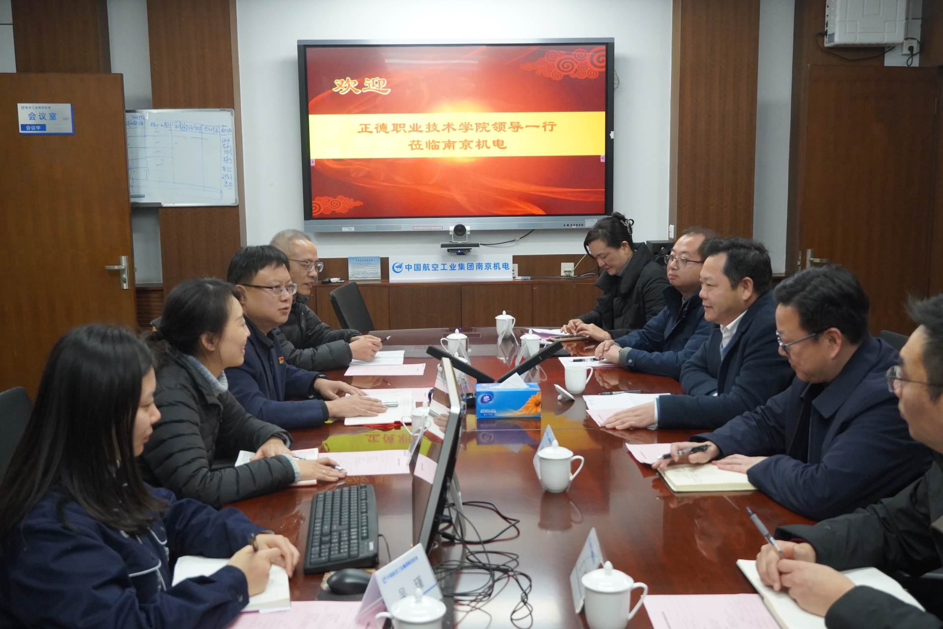 为进一步深化产教融合、精准对接产业需求,加强校企合作,12月27日,院长孙永荣带队赴中航工业南京机电科技有限公司(以下简称“南京机电”)走访交流,南京机电副主任王玉兵,人力资源部部长陈璟,人力资源部副部长、培训中心主任段喜松,春满四合院 副院长赵凯雷,院长助理、党政办公室主任王伟,院长助理、招生就业处处长王墀以及相关系负责人参加座谈。