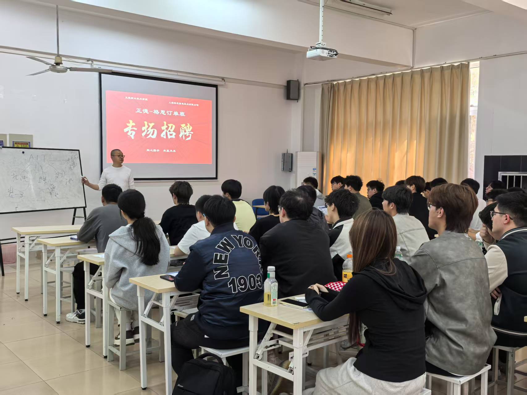 3月26日,上海格思信息技术有限公司(以下简称“格思信息”)热控产品事业部经理陈谷雷一行专程来春满四合院 开展“格思订单班”专场招聘活动。订单班全体学生积极参与,凭借扎实的专业技能与突出的职业素养,最终实现从课堂到航天制造一线的“无缝对接”。