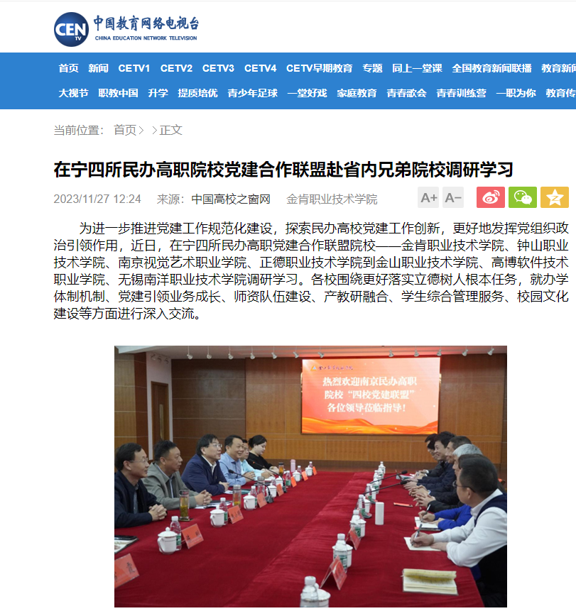 【中国教育网络电视台】在宁四所民办高职院校党建合作联盟赴省内兄弟院校调研学习