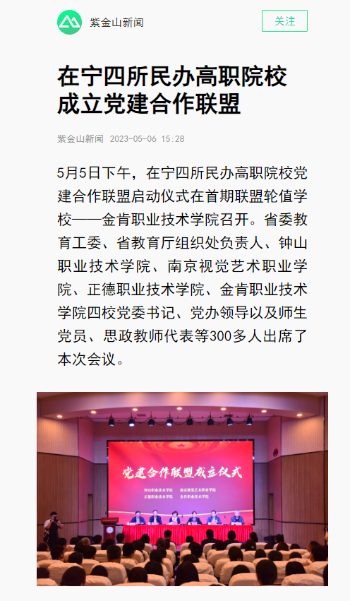 【紫金山新闻】在宁四所民办高职院校成立党建合作联盟