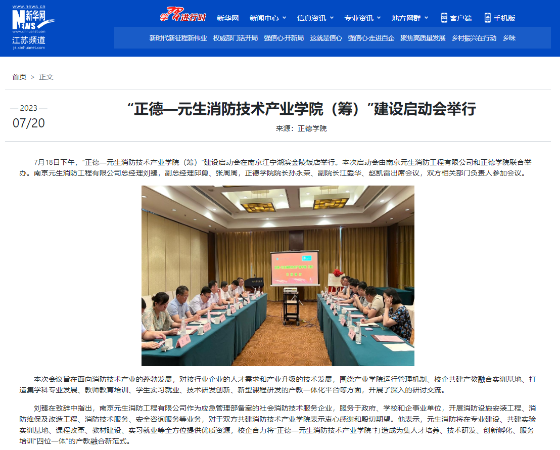 【新华网】“正德—元生消防技术产业学院(筹)”建设启动会举行