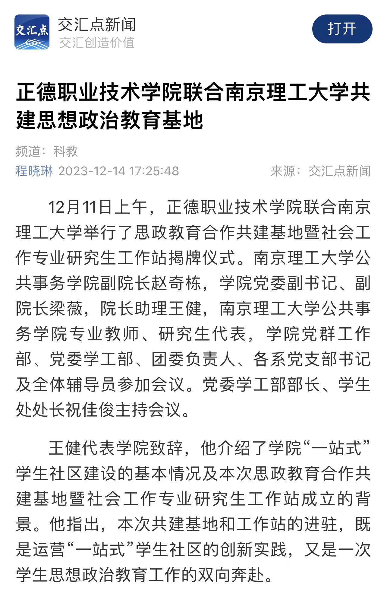 【交汇点新闻】春满四合院 联合南京理工大学共建思想政治教育基地