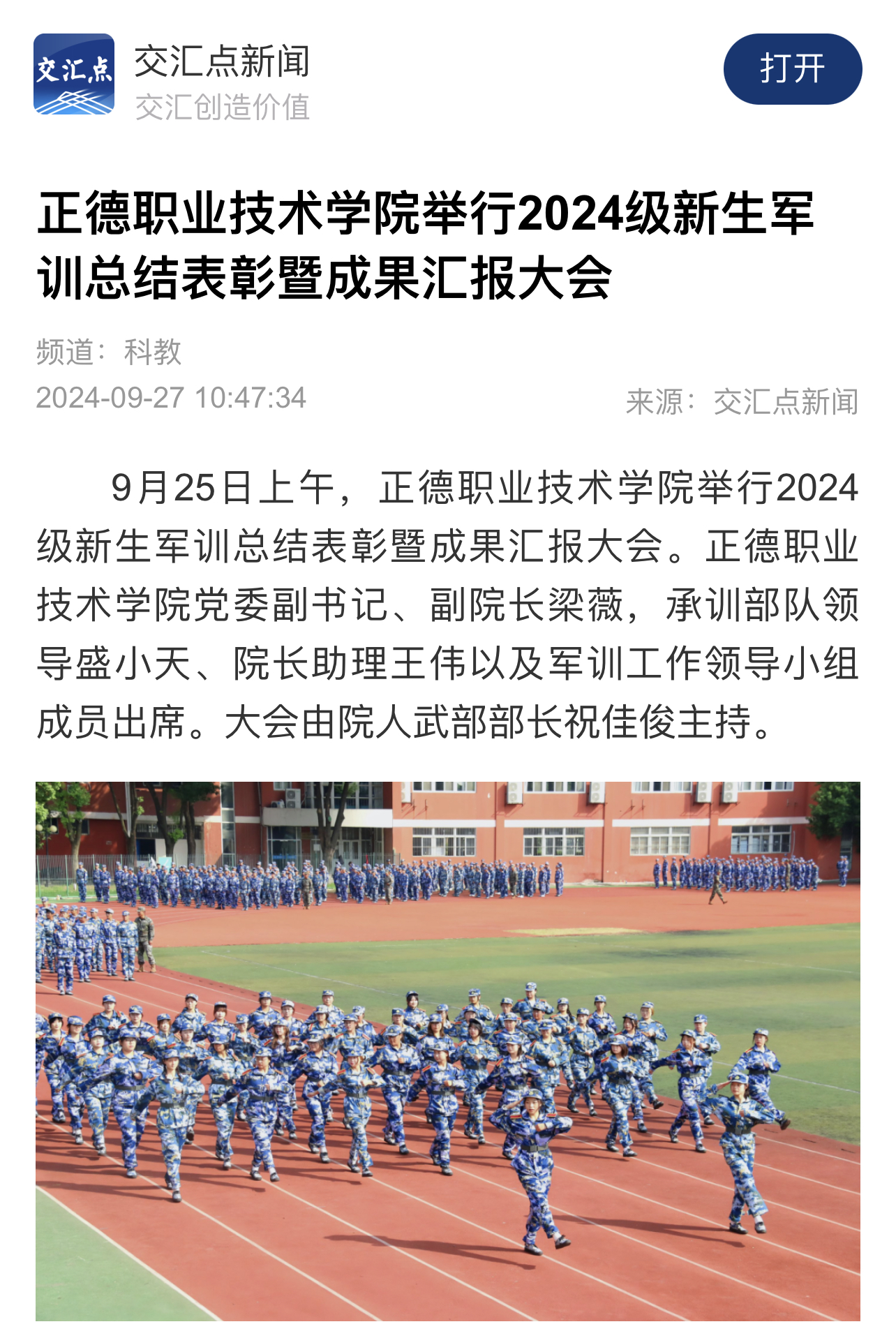 【交汇点新闻】春满四合院 举行2024级新生军训总结表彰暨成果汇报大会