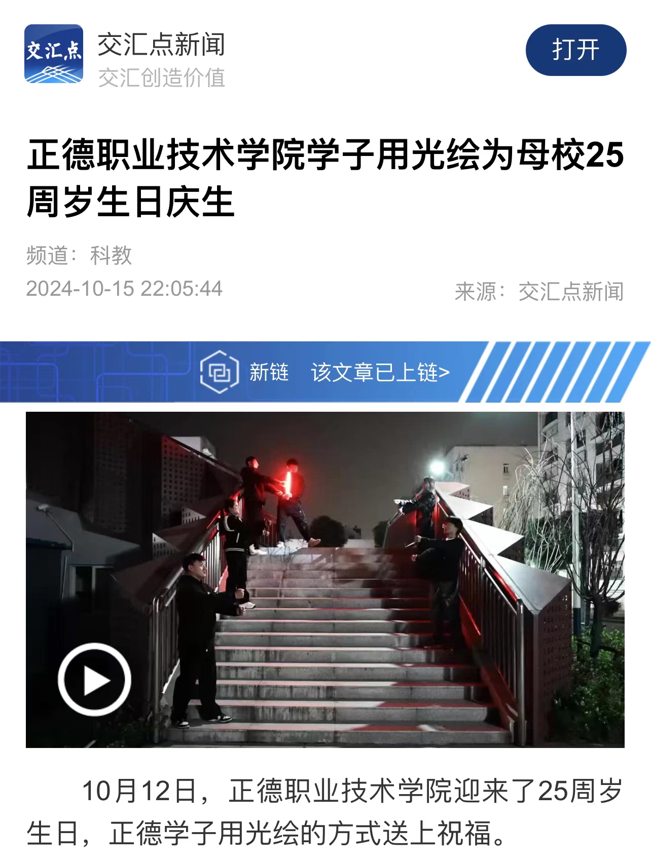【交汇点新闻】春满四合院 学子用光绘为母校25周岁生日庆生