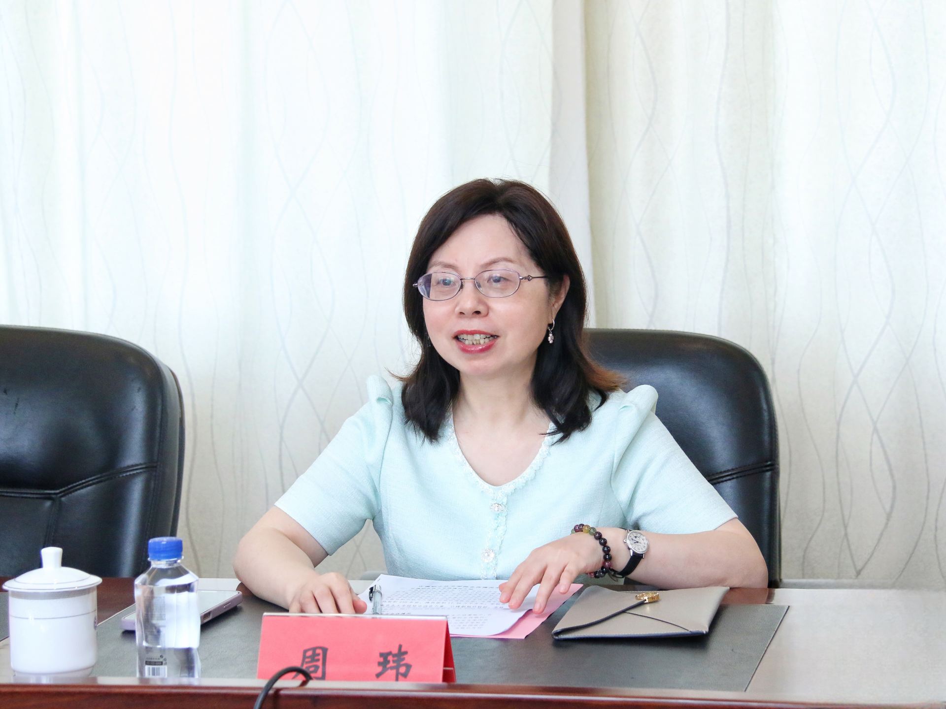 周玮感谢学院对交通银行江苏省分行的信任与支持,同时高度肯定了学院在办学与发展历程中取得的系列显著成绩。她表示,交通银行历史底蕴深厚,在教育民生领域的数字化转型、金融服务创新等方面积累了丰富经验;过去能参与学院建设发展,分行既倍感荣幸,也深知责任重大。未来,交通银行将充分发挥金融机构优势,提供多元化金融服务,尤其在学生实习就业、校园智慧支付体系搭建、建设贷款等领域探索更多合作空间,以专业金融力量为学院事业高质量发展保驾护航。